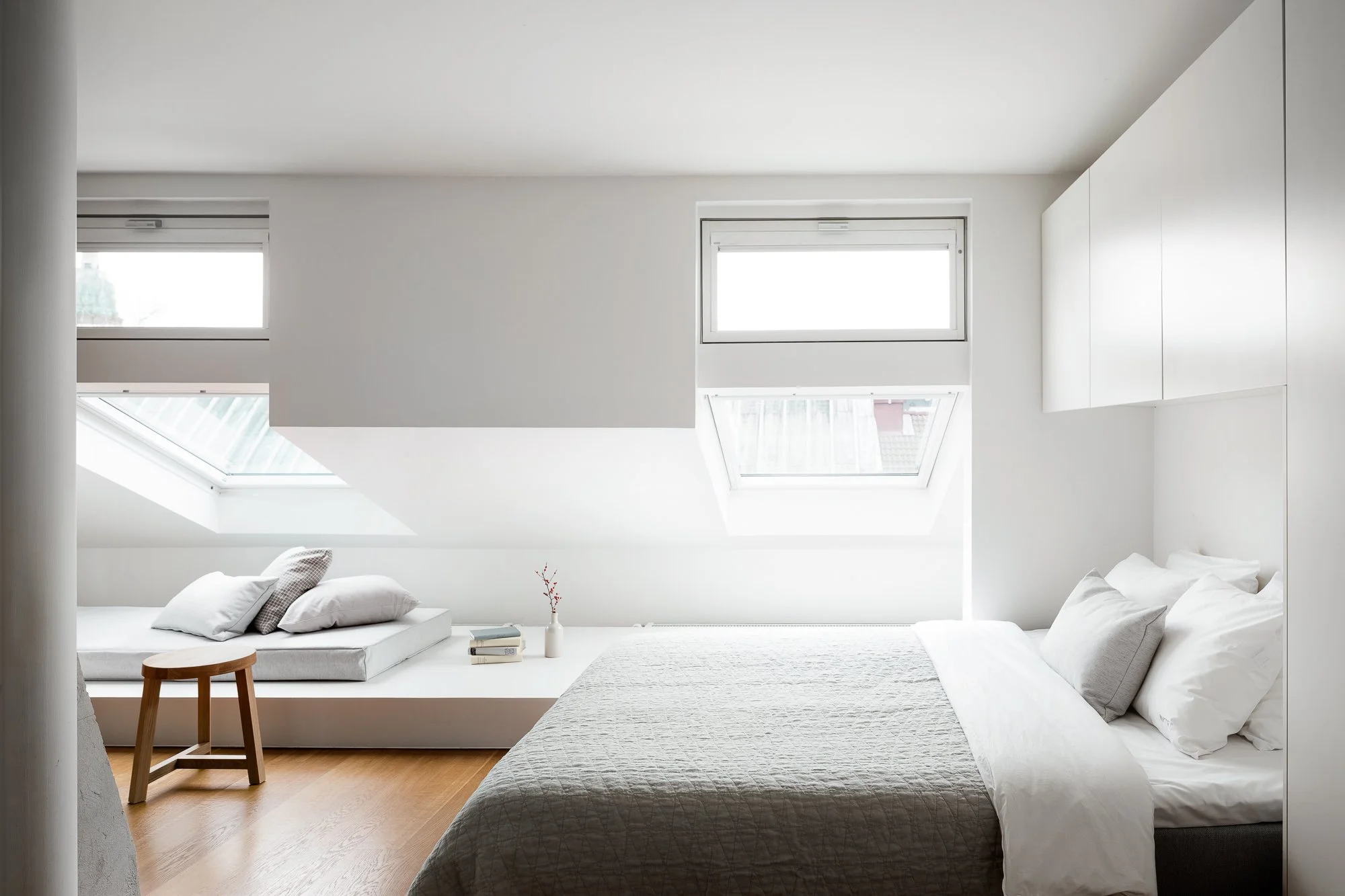 sketch of a bedroom wall with paneled moldings and Anna Glover wallpaper.